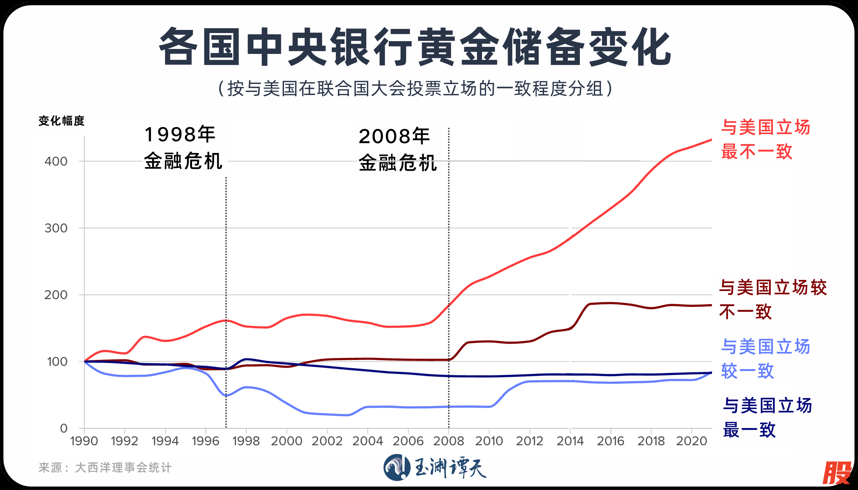 大西洋理事会就给出了一个判断,与美国政治距离越远的国家,购金意愿往往越强。